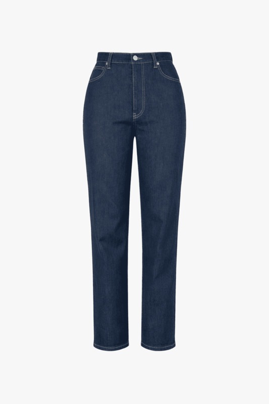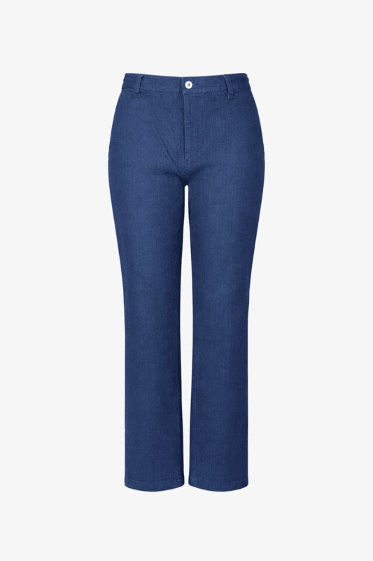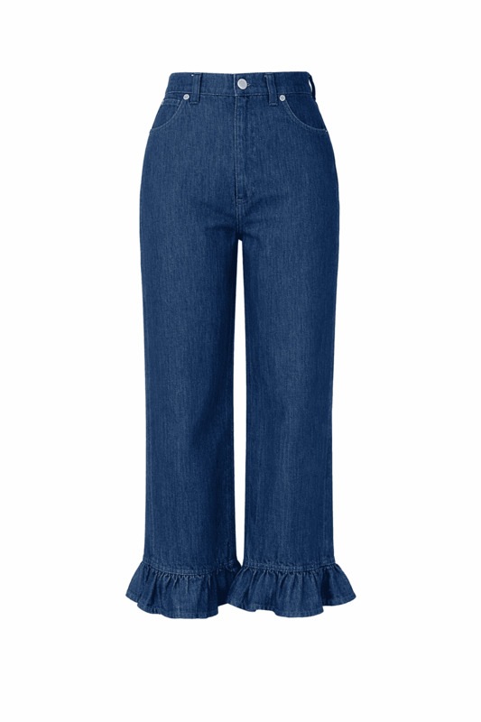 裾フリルストレートデニム(フルレングス) - インディゴブルー