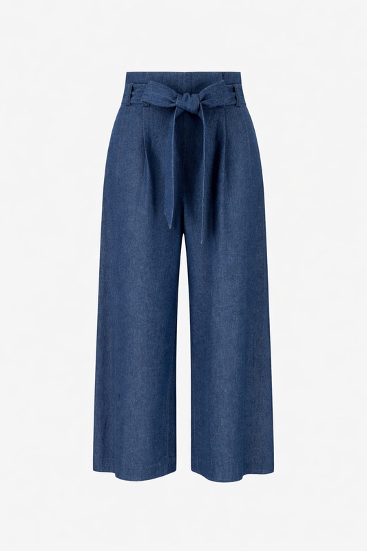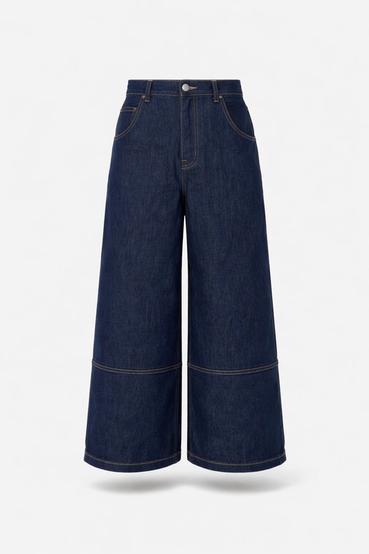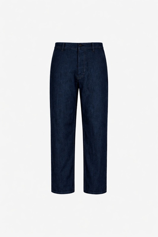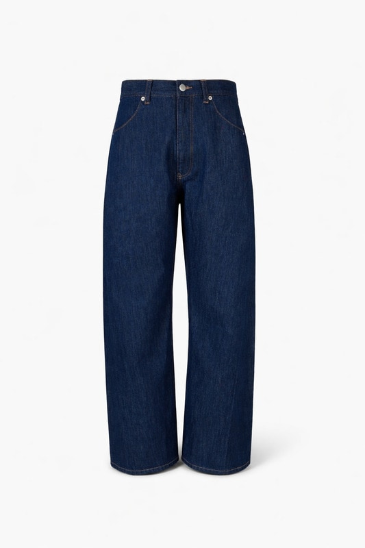 ダブルニーワイドシルエット(裾切りっぱなし仕様) - インディゴブルー