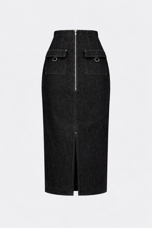 スランテッドポケットストレッチタイトフィットデニム - ブラック