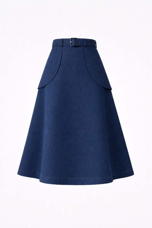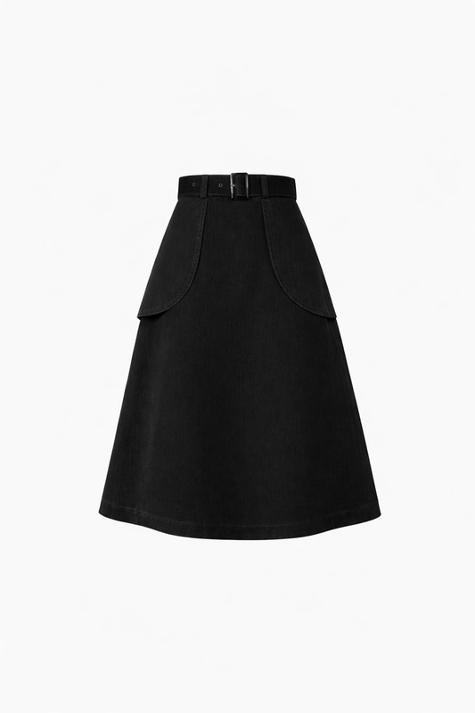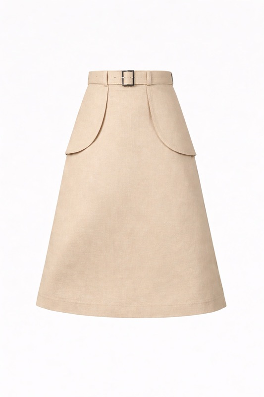 ハイウエストベルトミリタリーAラインミディ丈 - サンドベージュ
