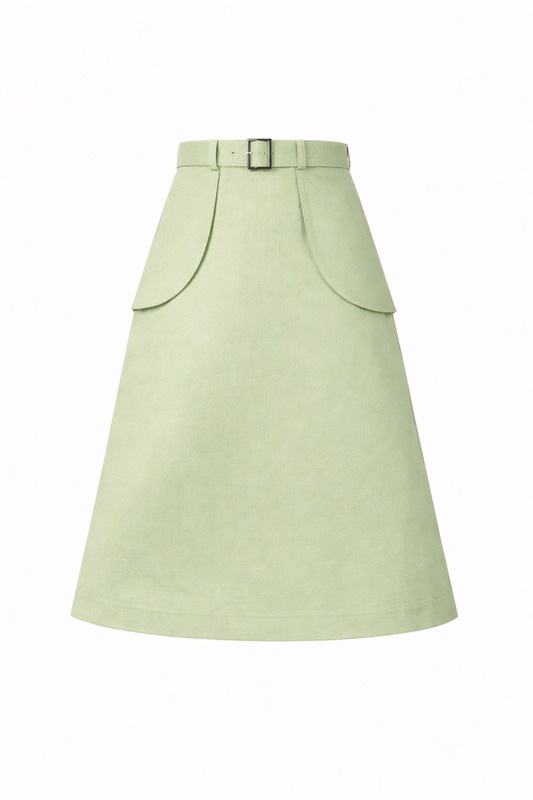 ハイウエストベルトミリタリーAラインミディ丈 - ライトグリーン
